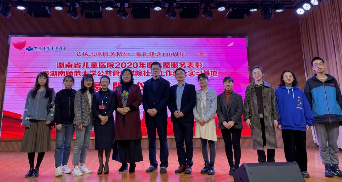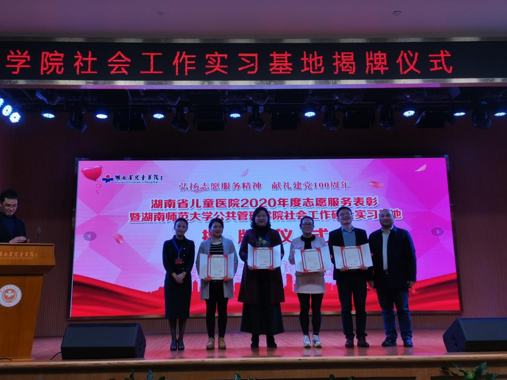 此次揭牌仪式完美落幕,不仅对优秀志愿者们的辛勤付出给予了肯定与鼓励,激发了他们的志愿服务精神,也使现场观众对志愿服务、医务社会工作服务有了更深入的理解,拓展了医务社会工作的学科视野和职业信心。2020年2月23日习近平总书记在统筹推进新冠肺炎疫情防控和经济社会发展工作部署会议上强调“要发挥社会工作的专业优势,支持广大社工、义工和志愿者开展心理疏导、情绪支持、保障支持等服务”。社会工作在疫情防控和医疗服务中的专业优势和积极作用得到越来越广泛的认可和关注。在此情势下,bet36365路检测中心与湖南省儿童医院合作共建社会工作硕士实习基地,对推动探索医务社会工作人才培养模式具有积极意义。双方期待精诚合作,共同打造医务社会工作产学研平台,推动湖南省医务社会工作人才培养和专业服务的创新发展。