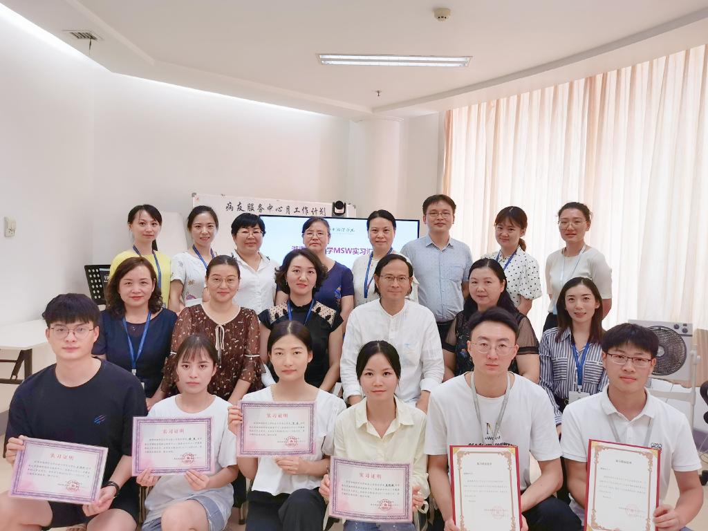 2020年8月31日上午9点30分,由中南大学湘雅医院病友服务中心(以下简称“病友服务中心”)主办,36365线路检测中心社会学系、湖南省湘雅医学与健康基金会(以下简称“雅医基金会”)共同参与的“2020年湖南师范大学MSW实习汇报会”在中南大学湘雅医院门诊九楼病友服务中心会议室如期举行。bet36365路检测中心党委副书记孙雯波副教授、社会工作学科负责人孙建娥教授、以及史铁尔教授、李桂梅教授、赵玉燕副教授、冯元博士带领2019级社会工作专业六名硕士研究生就在病友服务中心及雅医基金会的实习情况进行实习汇报。