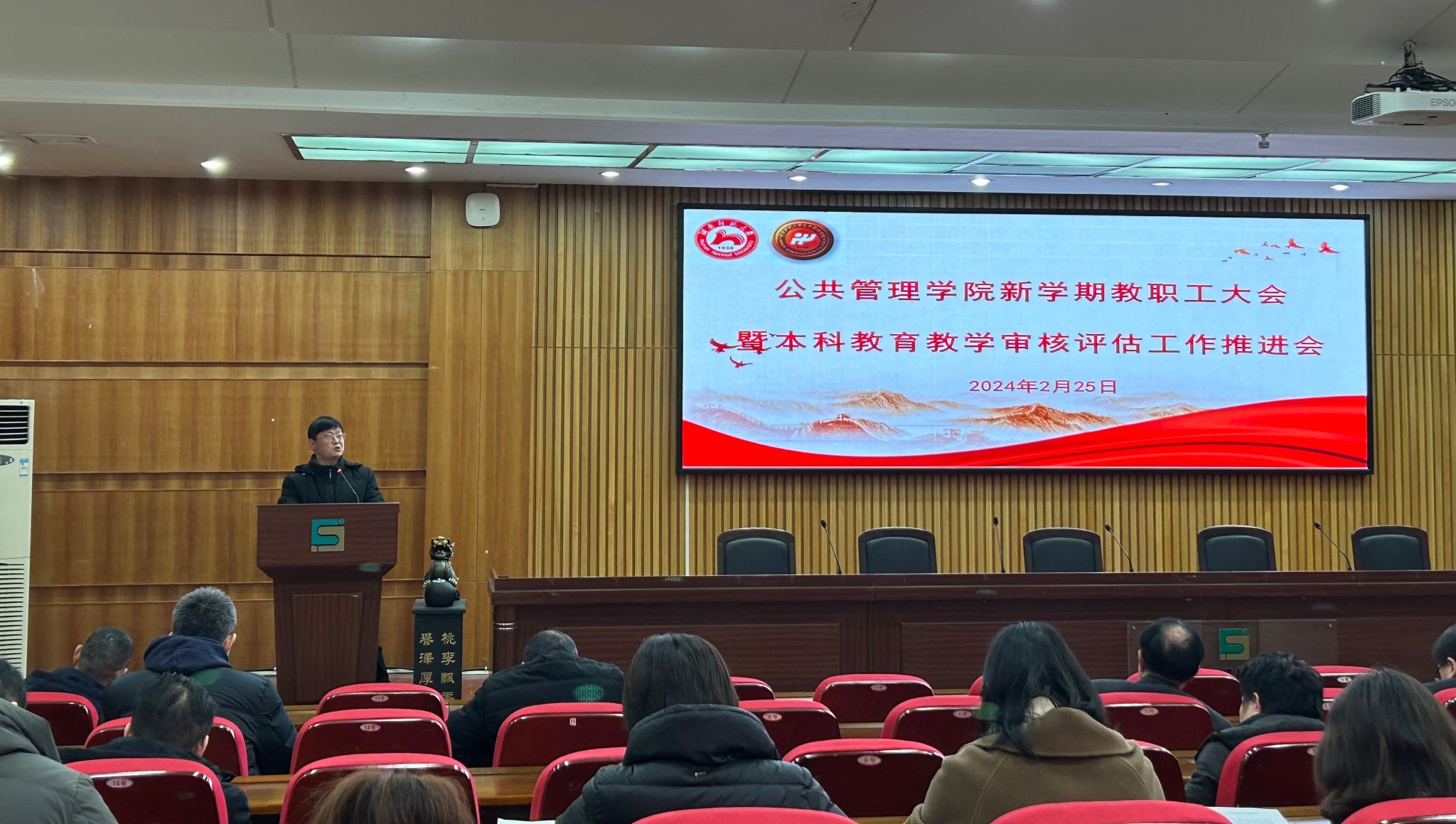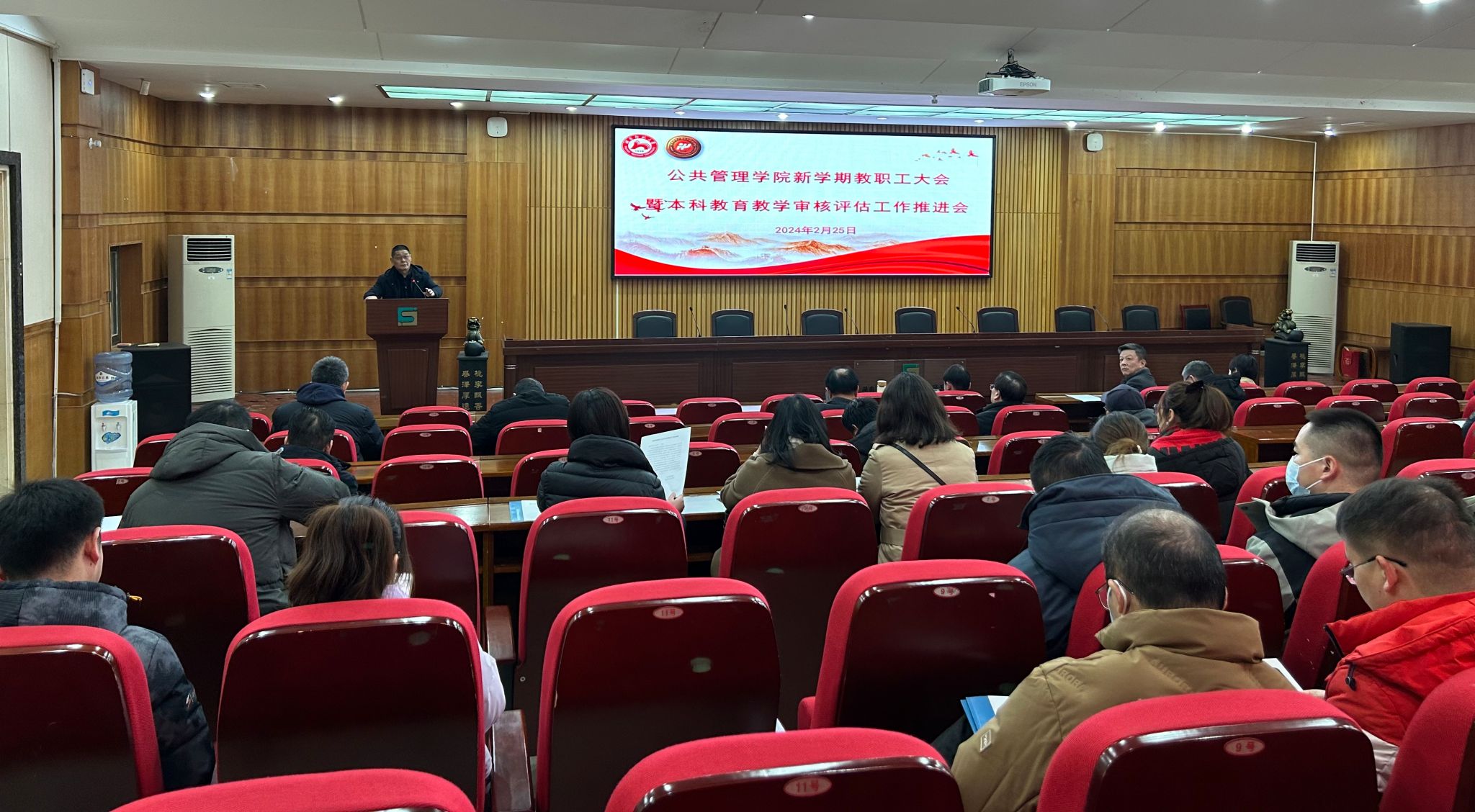 毛新志院长作新学期工作报告。他向全院教职工传达了学校新学期工作会议精神;简要总结了学院2023年度取得的主要成绩,分析了学院在党建思政、人才培养、队伍建设、学科发展与科学研究等方面存在的突出问题。结合学院实际情况,重点就新学期备战本科教育教学审核评估,全面提升本科人才培养质量;加强人才工作力度和高显示度成果培育,积极推动“双一流”建设;加强党建与思政工作,奋力推进学院事业高质量发展等方面进行全面部署。