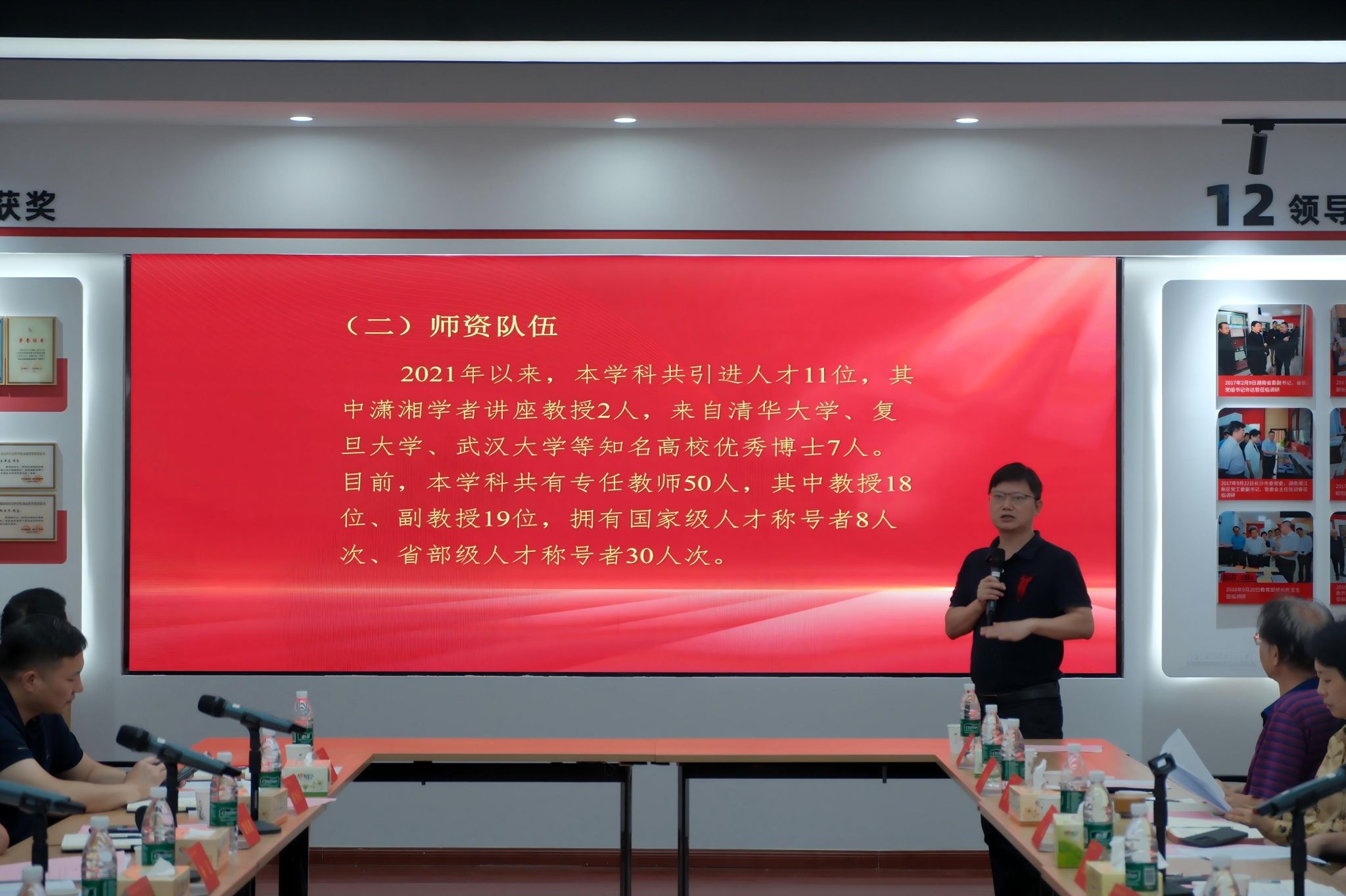 随后,学院院长、哲学学科负责人毛新志教授从学科建设目标、成果现状、存在问题、推进计划、所需支持五个方面汇报学科建设工作实施方案。通过详实的数据分析,毛院长指出,近五年哲学学科在人才培养、科学研究及智库建设等领域已取得显著成效,但也面临教师高层次人才和高显示度成果偏少、国际化程度低等问题。就此,他从党建、人才培养、科研、师资建设、社会服务、国际交流等方面提出了具体的解决方案。