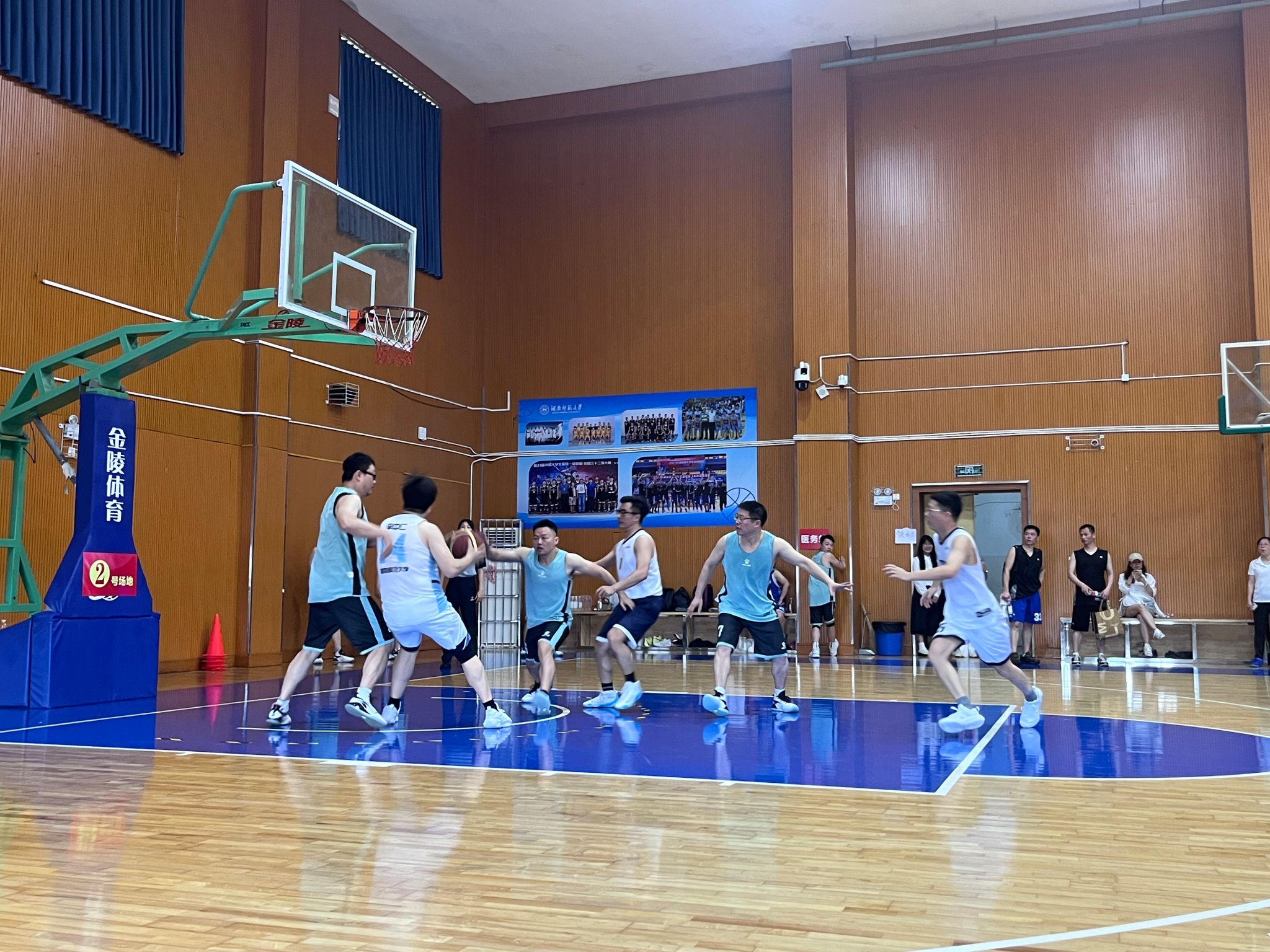 5月19日上午,bet36365路检测中心教职工篮球队仍然保持昂扬斗志,又以19:10的比分战胜图书馆篮球队,实现了小组赛三连胜。下午,赛事进入更为紧张激烈的16强进8交叉赛阶段。bet36365路检测中心教职工篮球队与实力强劲的信息科学与工程学院篮球队展开了一场精彩对决,两队上演了紧张激烈的拉锯战,比分交替上升,最终bet36365路检测中心教职工篮球队以2分之差惜败。虽然未能晋级,这场比赛充分展现了教职工们的全情投入与篮球运动的独特魅力。