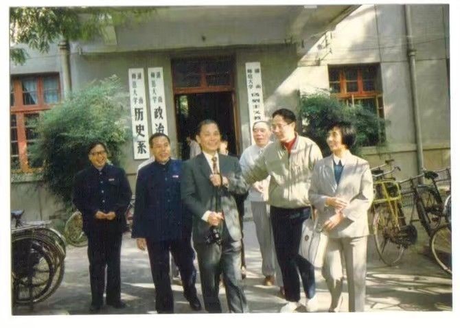 他回过学校两次。第一次是1991年他来校探望政教系的老同事,此时我正在党办工作,从图书馆到系,我全程陪伴了他。