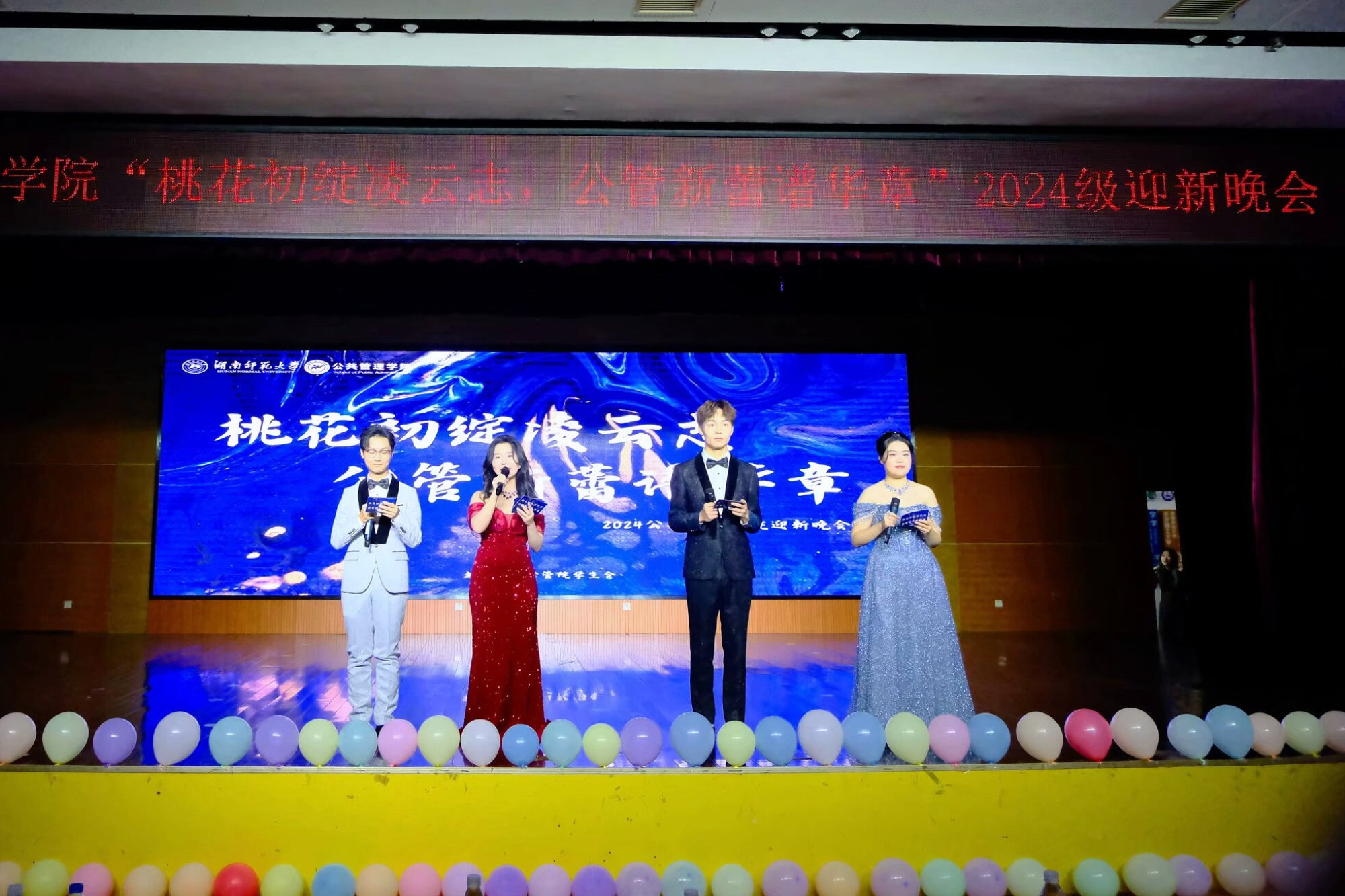 (通讯员 刘剑 康婕)为丰富同学们的校园文化生活,增强24级本科生对学院的归属感和认同感,12月1日晚,36365线路检测中心(以下简称“公管院”)“桃花初绽凌云志,公管新蕾谱华章”主题迎新晚会在励德楼江边活动中心举行。公管院党委书记余望成,副院长苏静,党委副书记孙雯波,政治学与行政管理系系主任付振奇、老师颜琳,哲学系老师王大封、肖柯、彭婷,学工办主任林哲旭,辅导员申峰铭、兰绍娴、夏瑞霞,19级哲学校友张思为以及公管院24级本科生参与此次晚会。