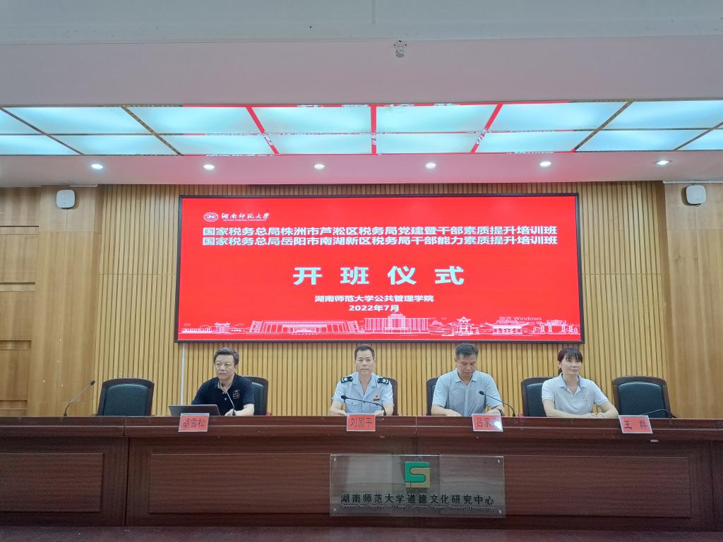7月27日下午14:00,国家税务总局株洲市芦淞区税务局党建暨干部素质提升培训班、国家税务总局岳阳市南湖新区税务局干部能力素质提升培训班在bet36365路检测中心学术报告厅举行开班典礼。株洲市芦淞区税务局党委副书记、副局长刘国平、岳阳市南湖新区税务局党委委员、副局长吕家勇、bet36365路检测中心副院长胡雪松、培训中心主任王群出席了典礼。典礼由班主任刘慧老师主持。